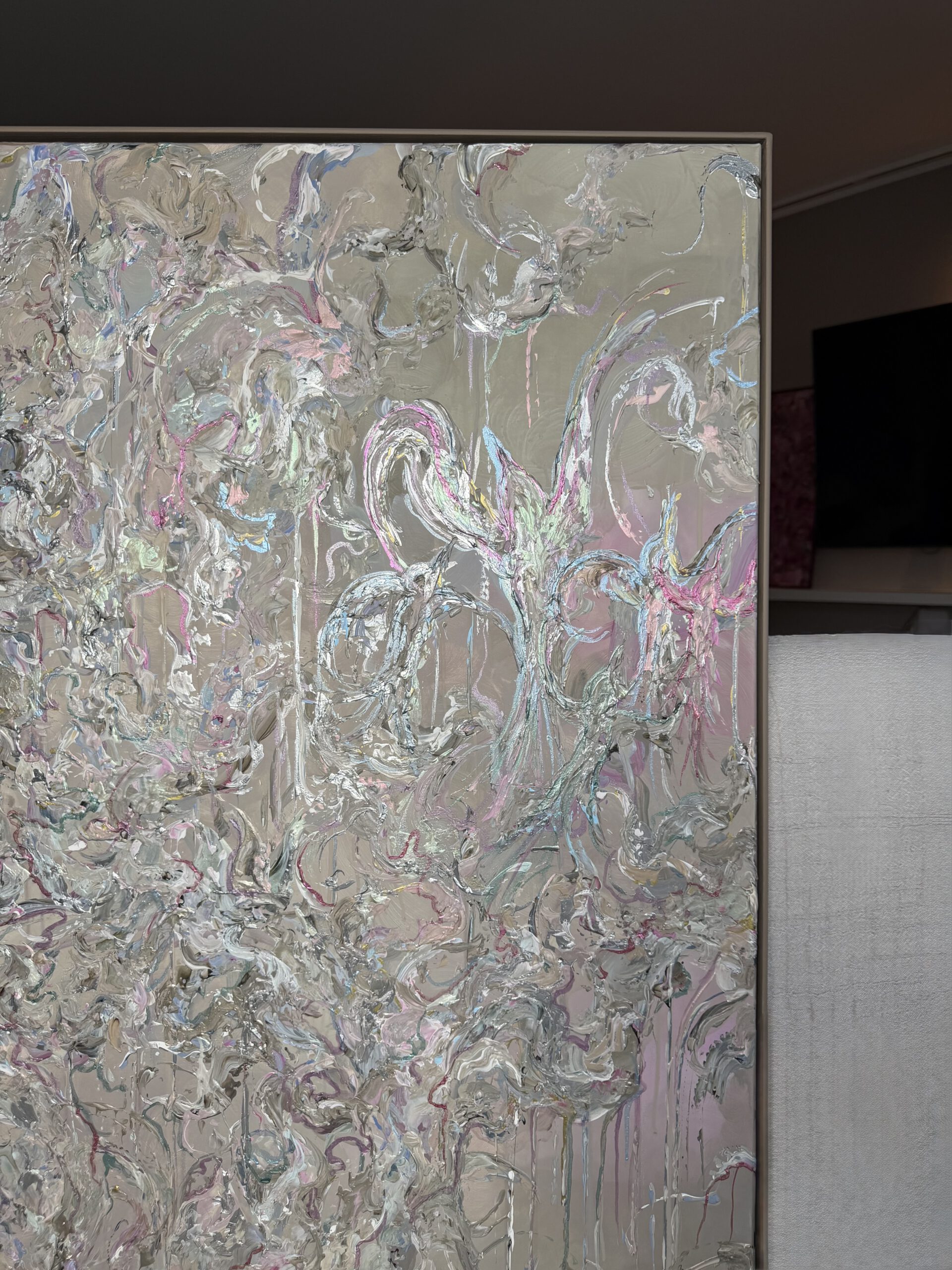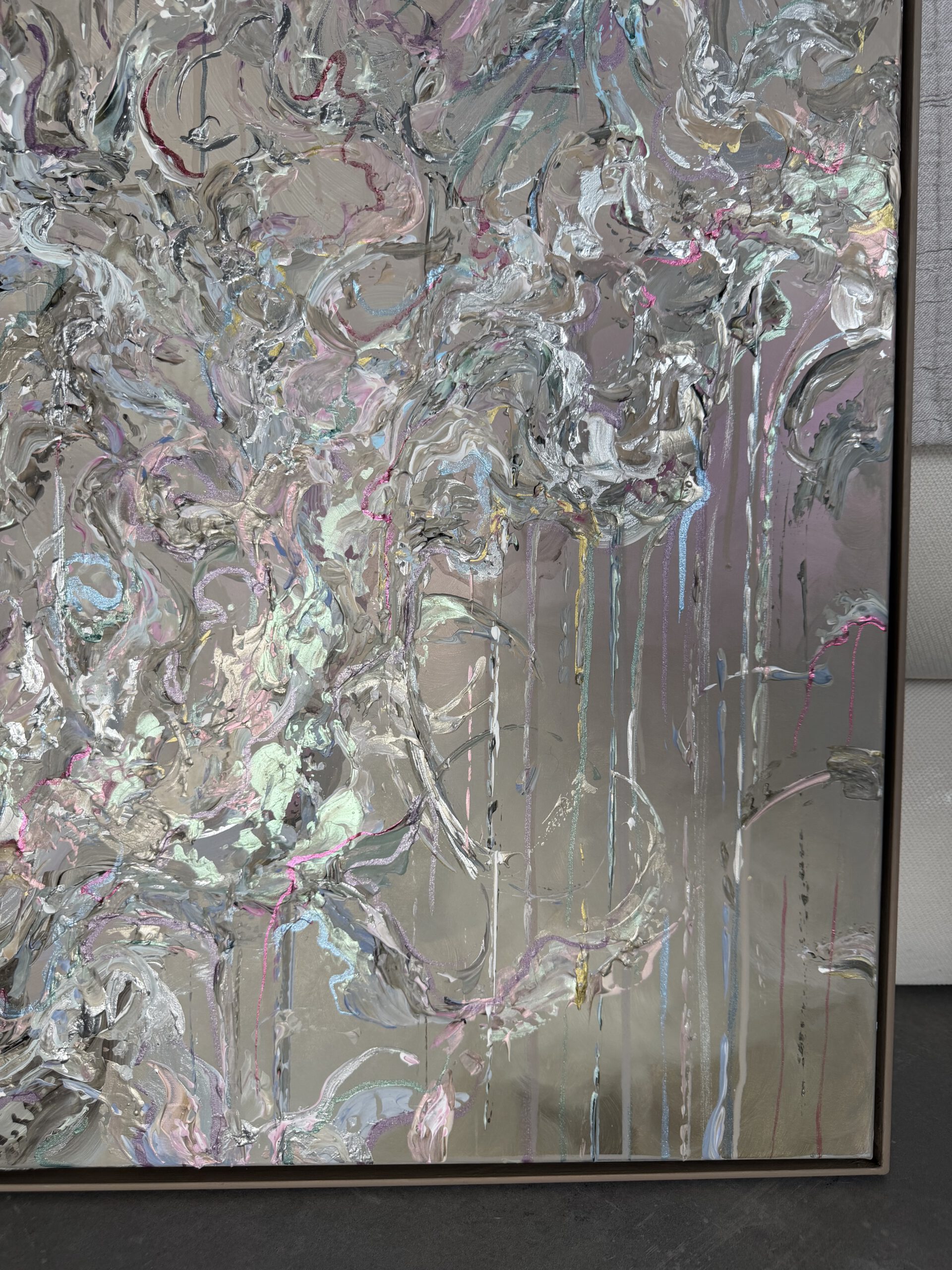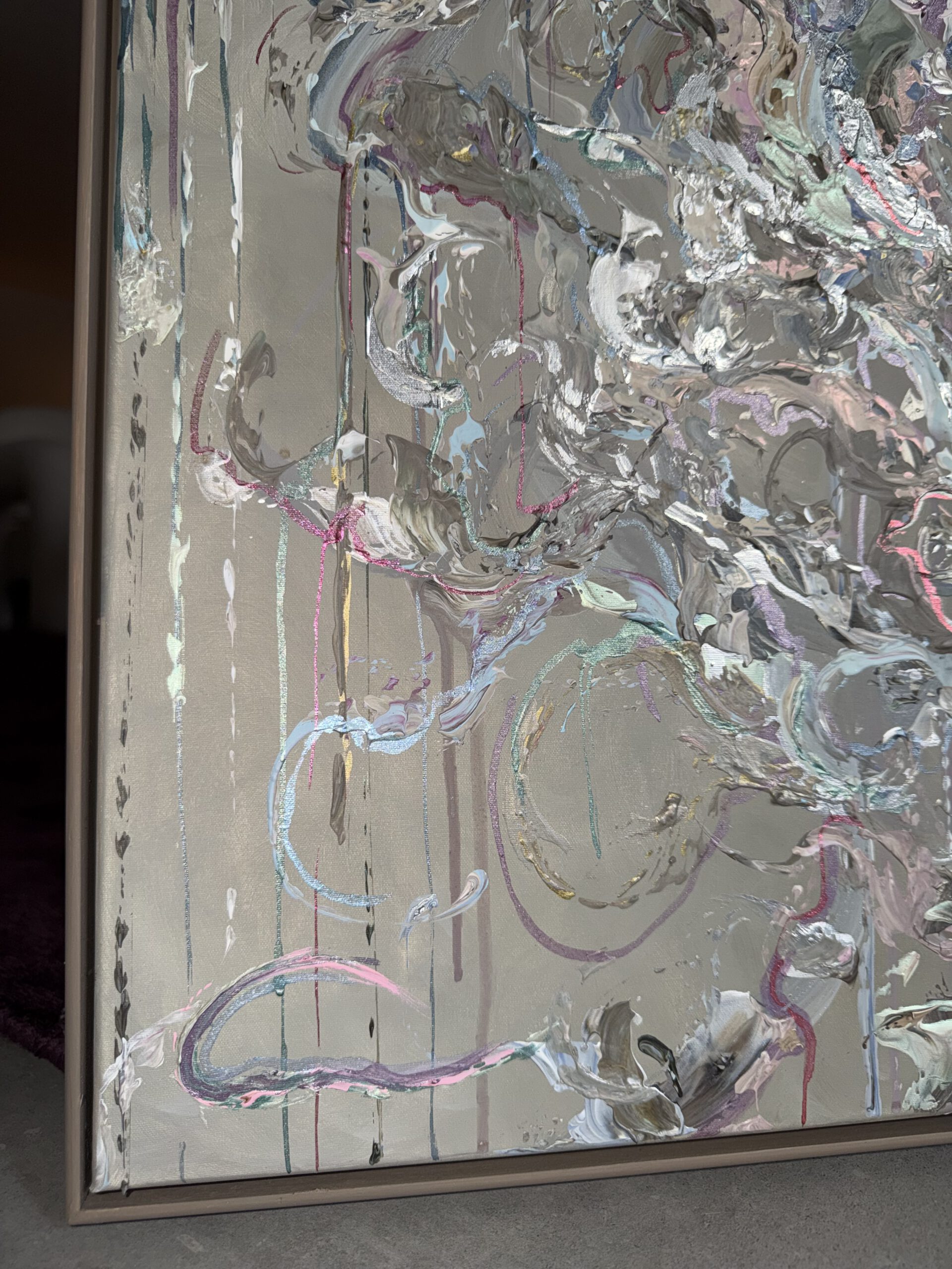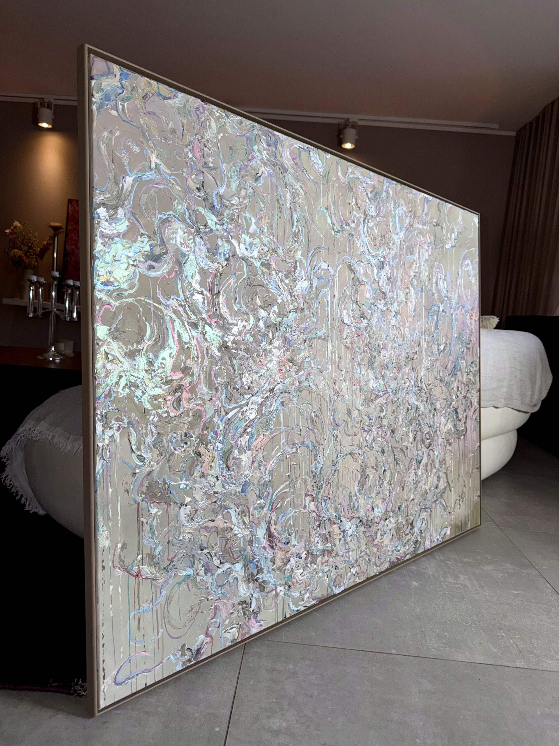 Acryl auf Leinwand, veredelt mit Silberlacken Perlmutt- und Aquarellakzenten