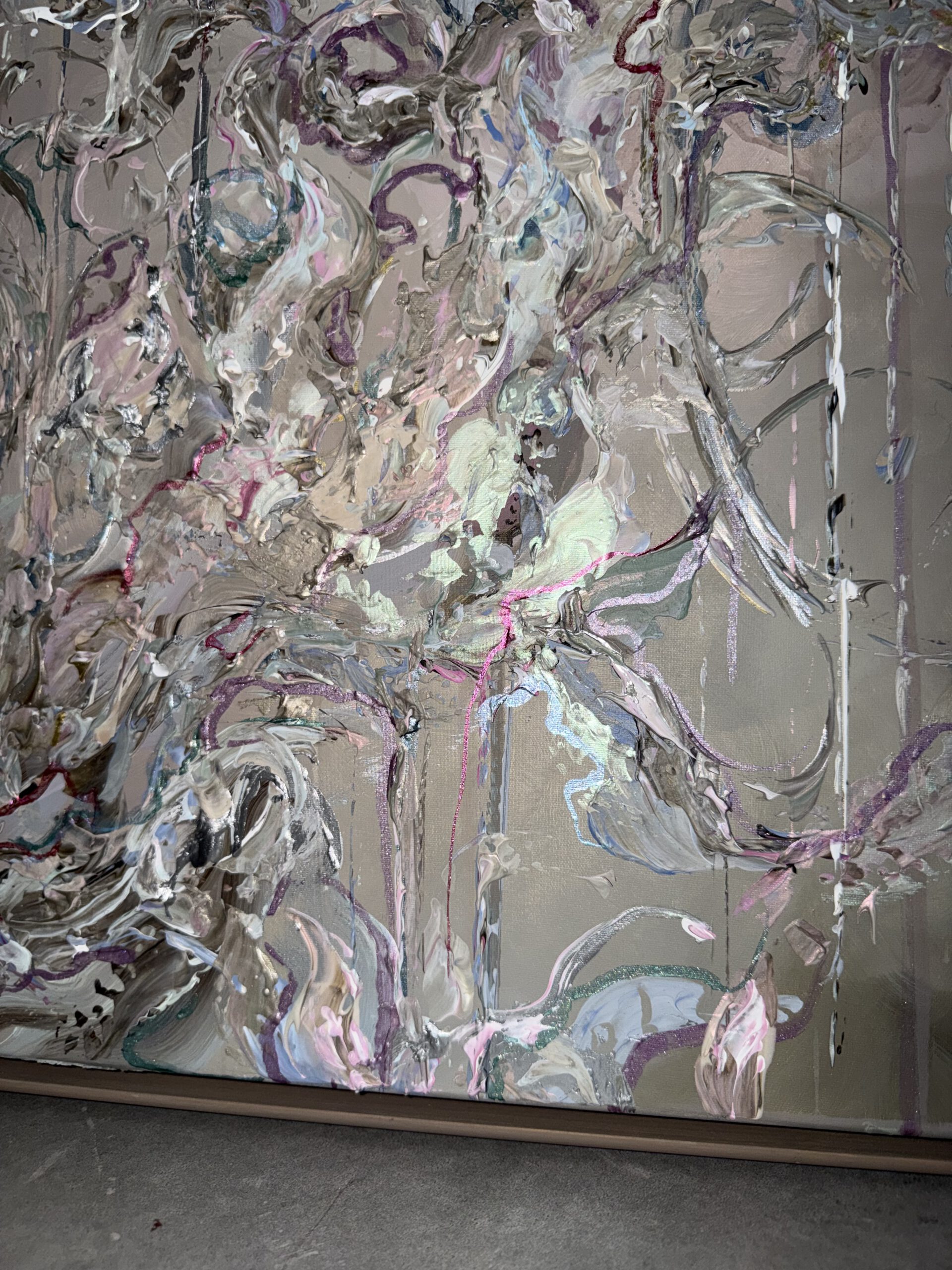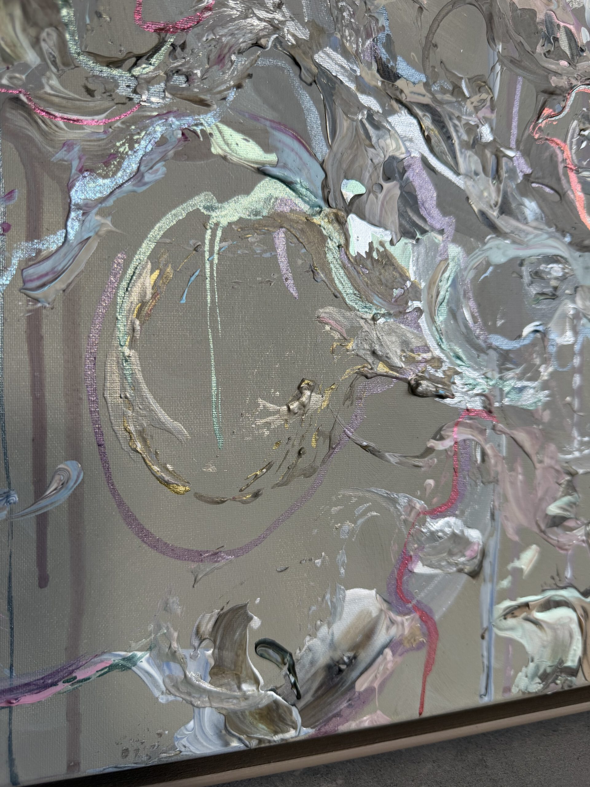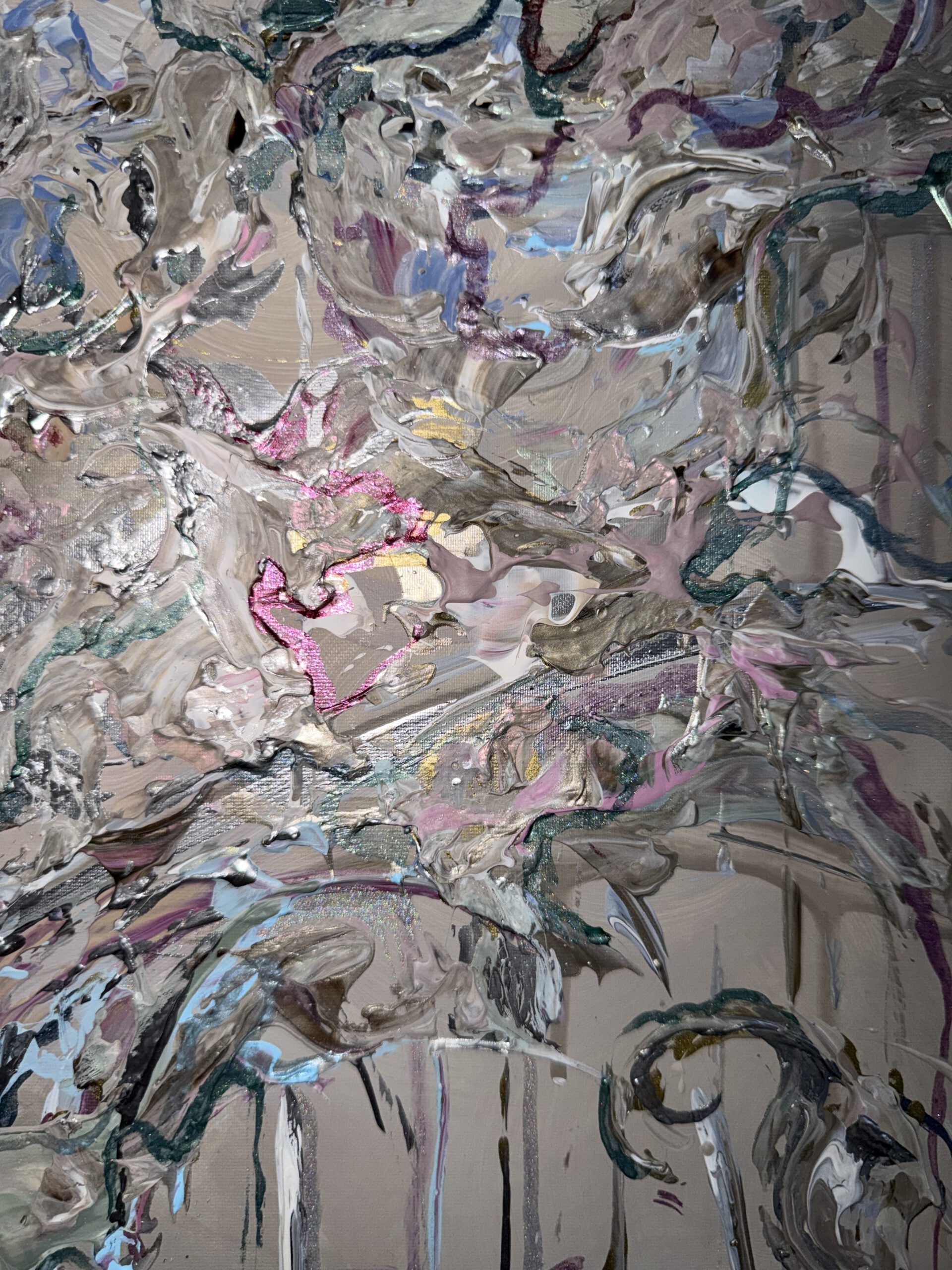 Acryl auf Leinwand, veredelt mit Silberlacken Perlmutt- und Aquarellakzenten