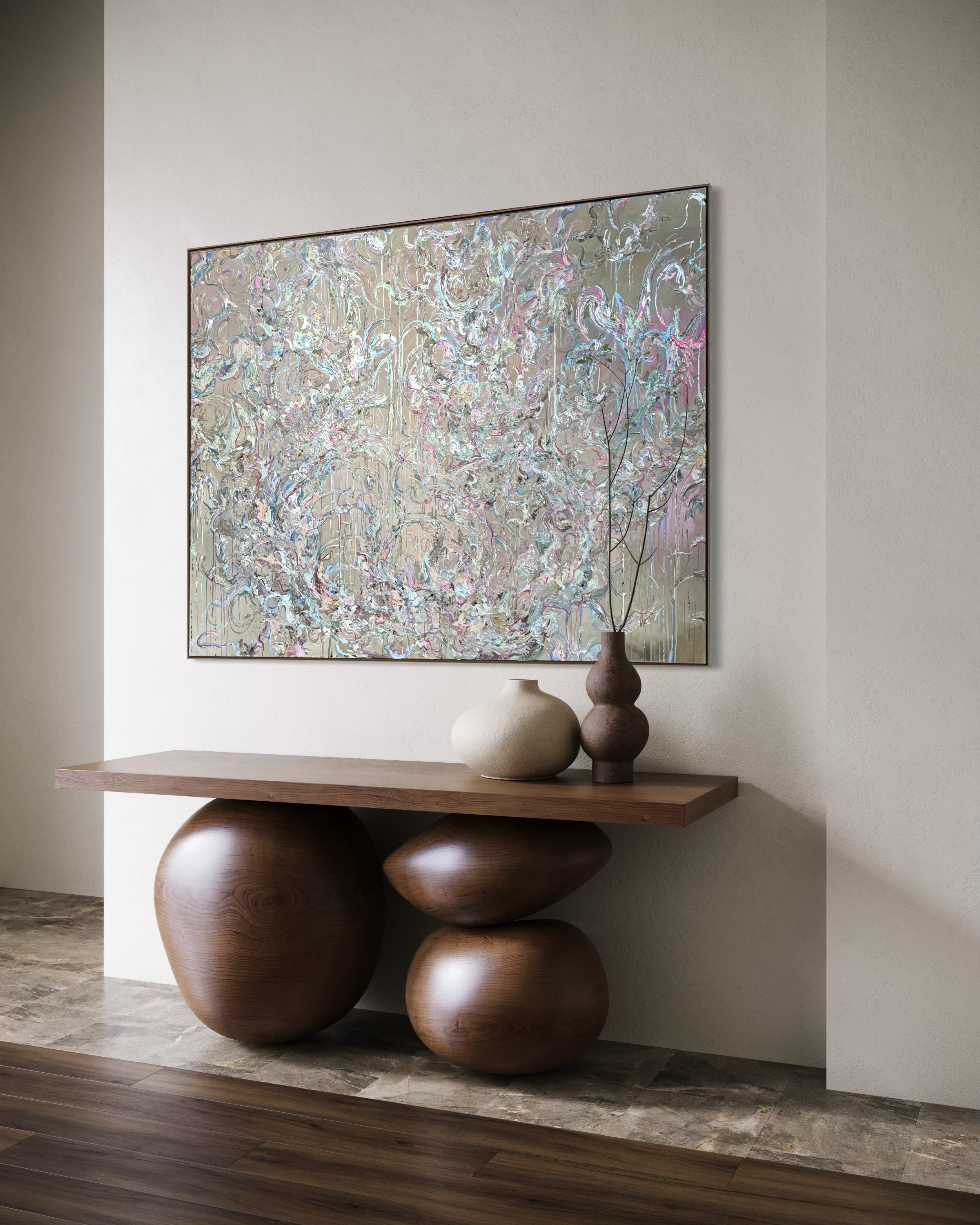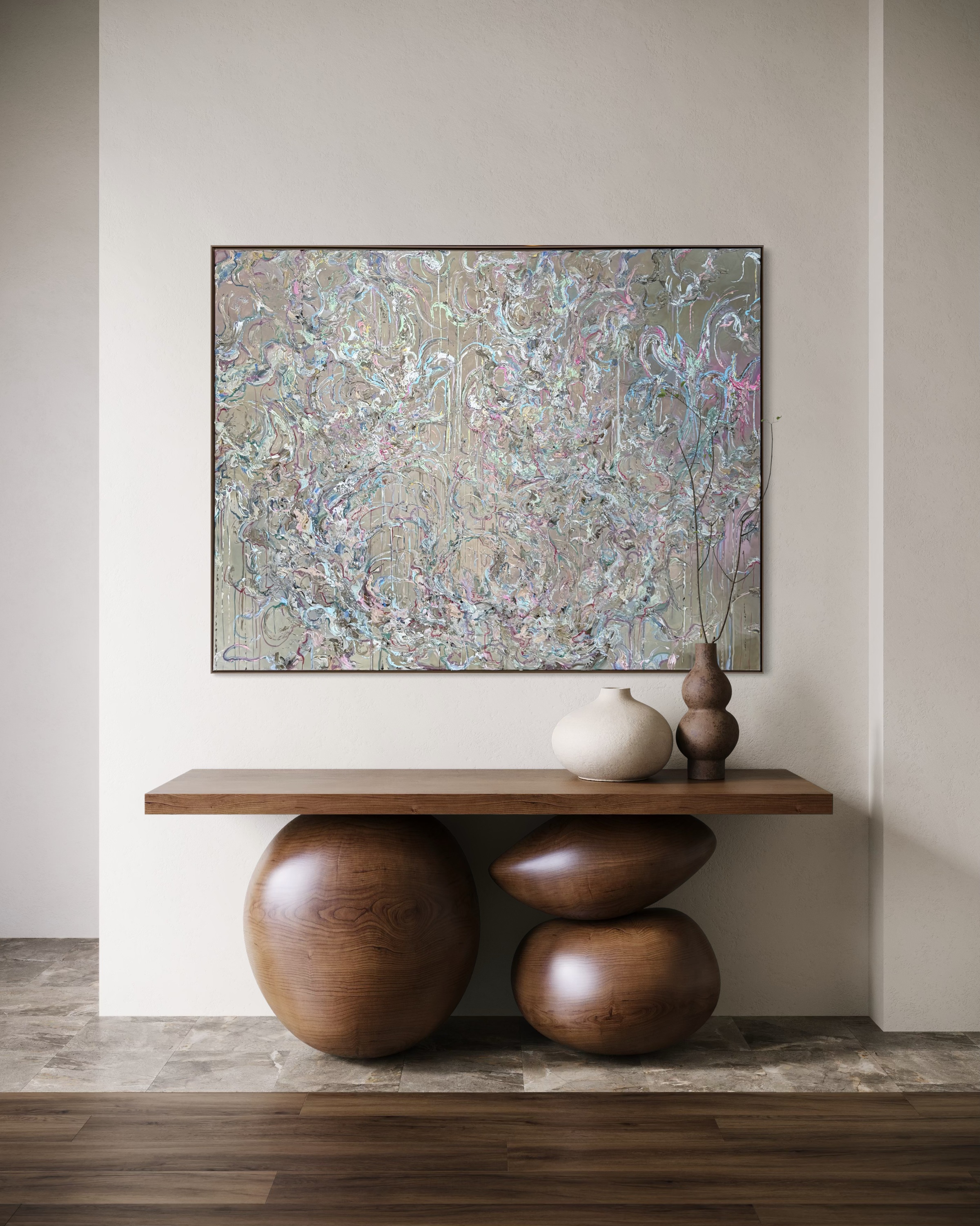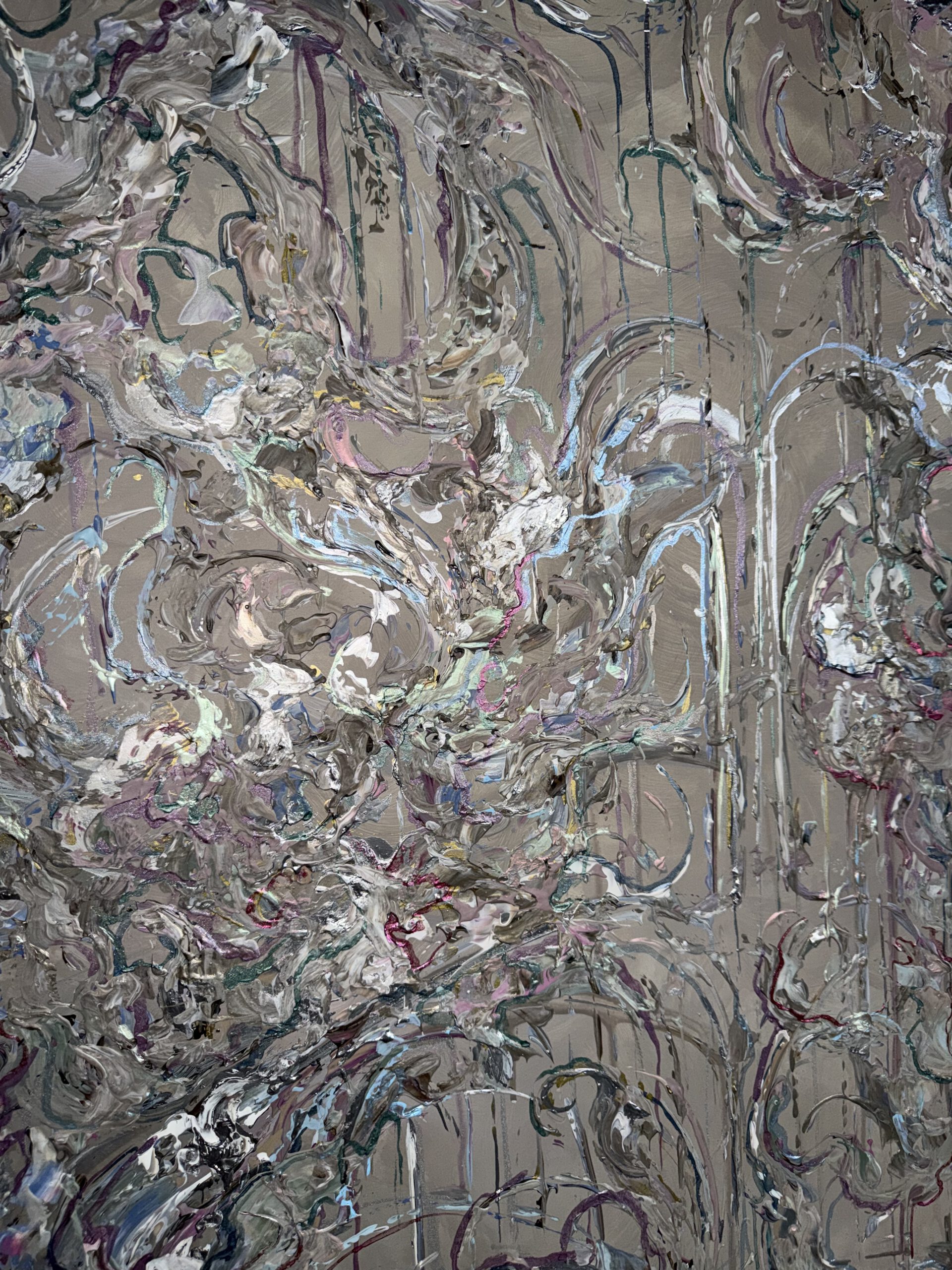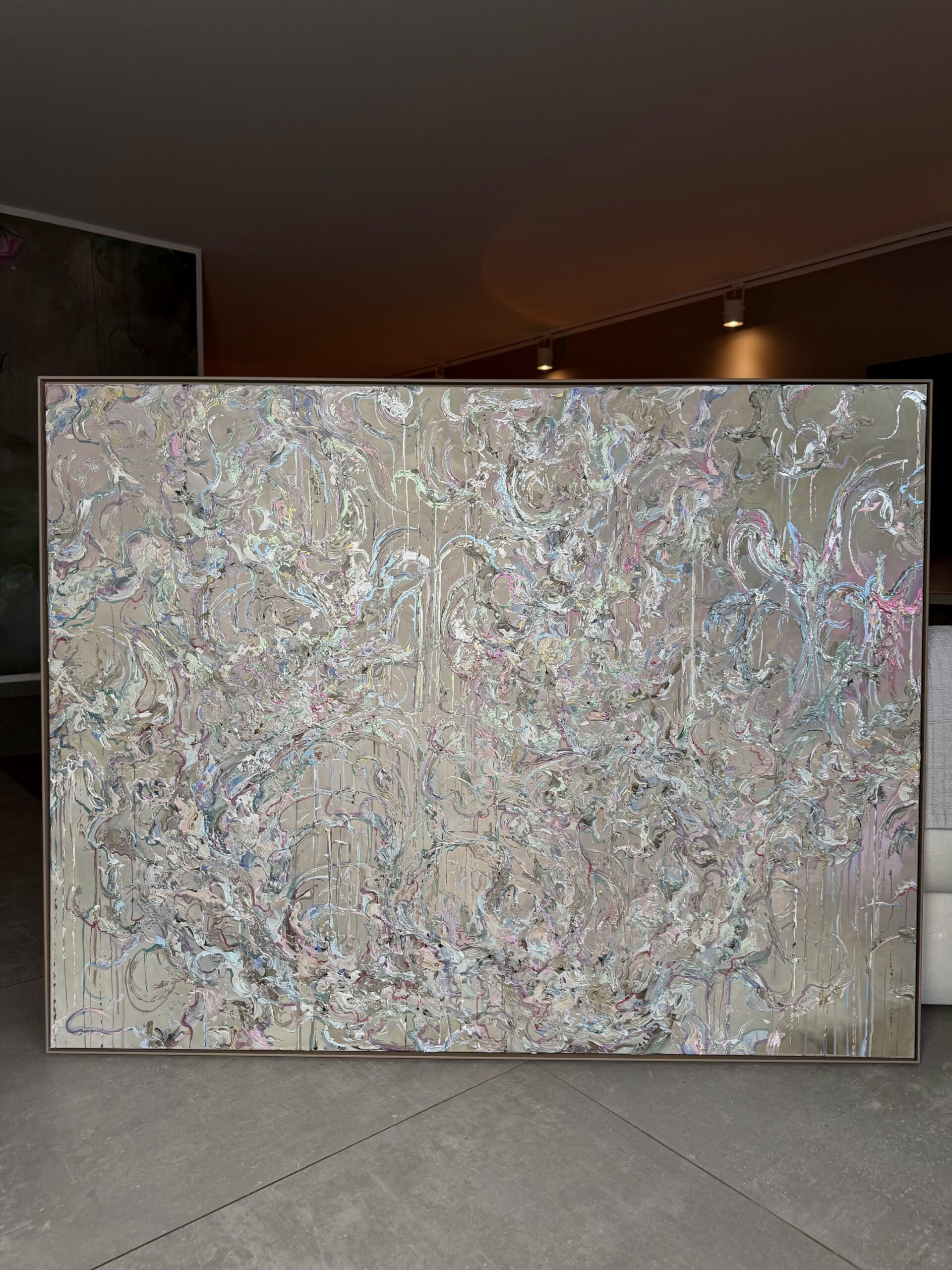 Acryl auf Leinwand, veredelt mit Silberlacken Perlmutt- und Aquarellakzenten